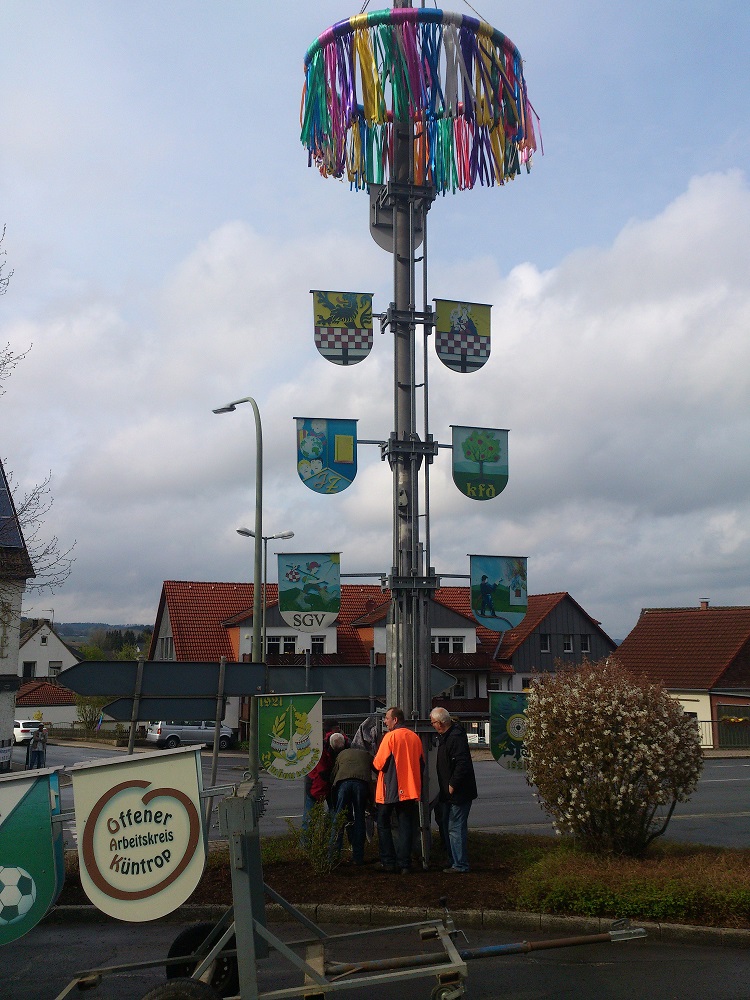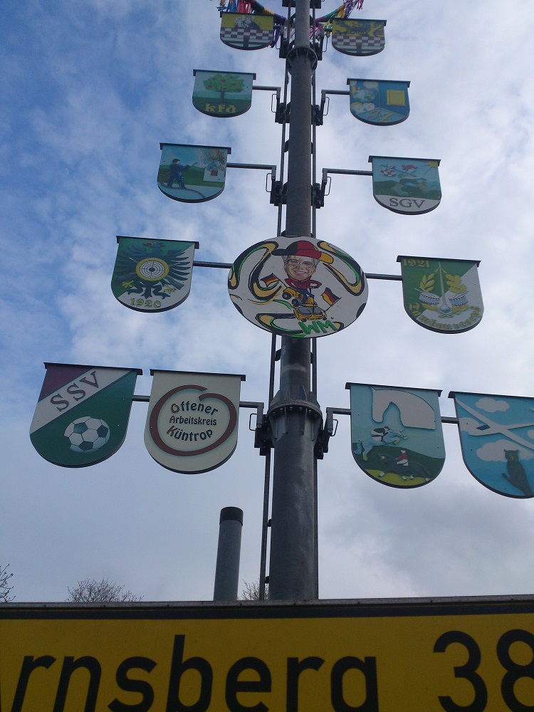 Unser diesjähriges Maibaum fest war dank den Helfern des OAK wieder ein Erfolg. Sie begannen schon um 16 Uhr mit dem vorbereiten der traditionellen Schilder. Bei kühlen Getränken und einigen Bratwürsten vom Grill wurden dann die Schilder nach oben gezogen. Als letztes wurde das Jux Schild enthüllt, was dieses Jahr Ludger Stracke als Anführer und auch Erfinder des WM Rasenmäher Korsos zeigt. Die Idee kam Ludger bei einem Feierabend Bier mit Freunden, wo er aus Jux sagte „wenn wir Fußballweltmeister werden fahren wir mit dem Aufsitzmäher durchs Dorf. Umso erschrockener war er dann als es ein paar