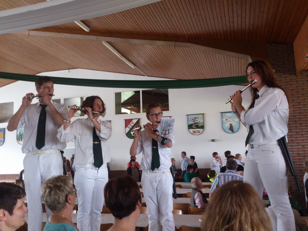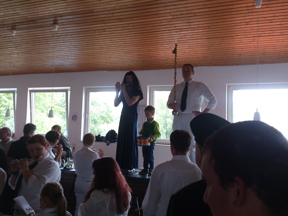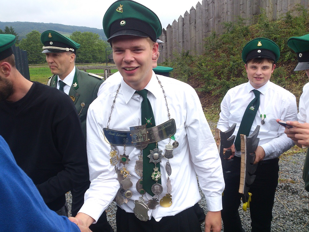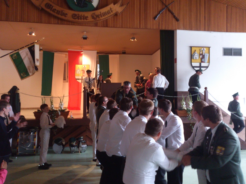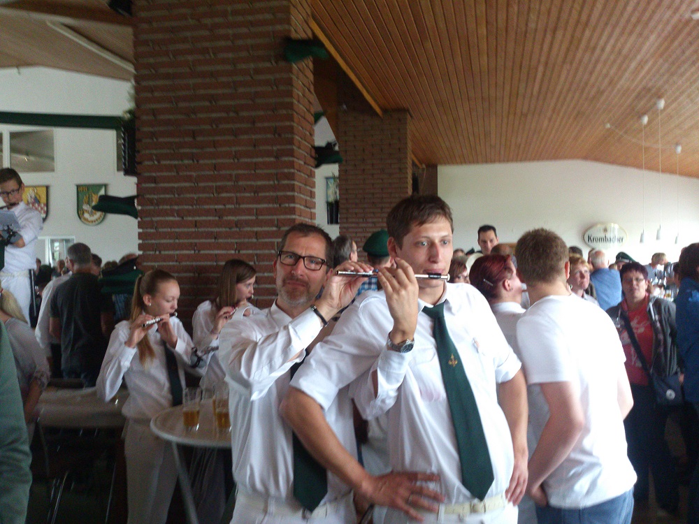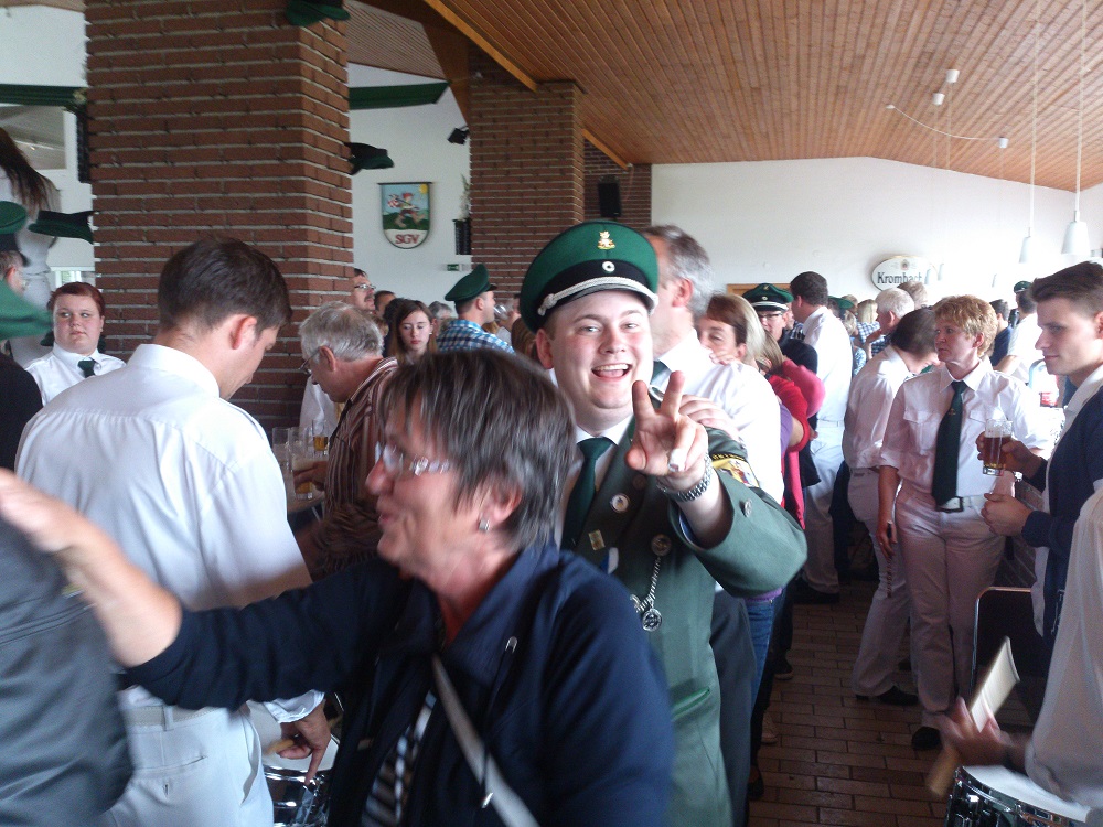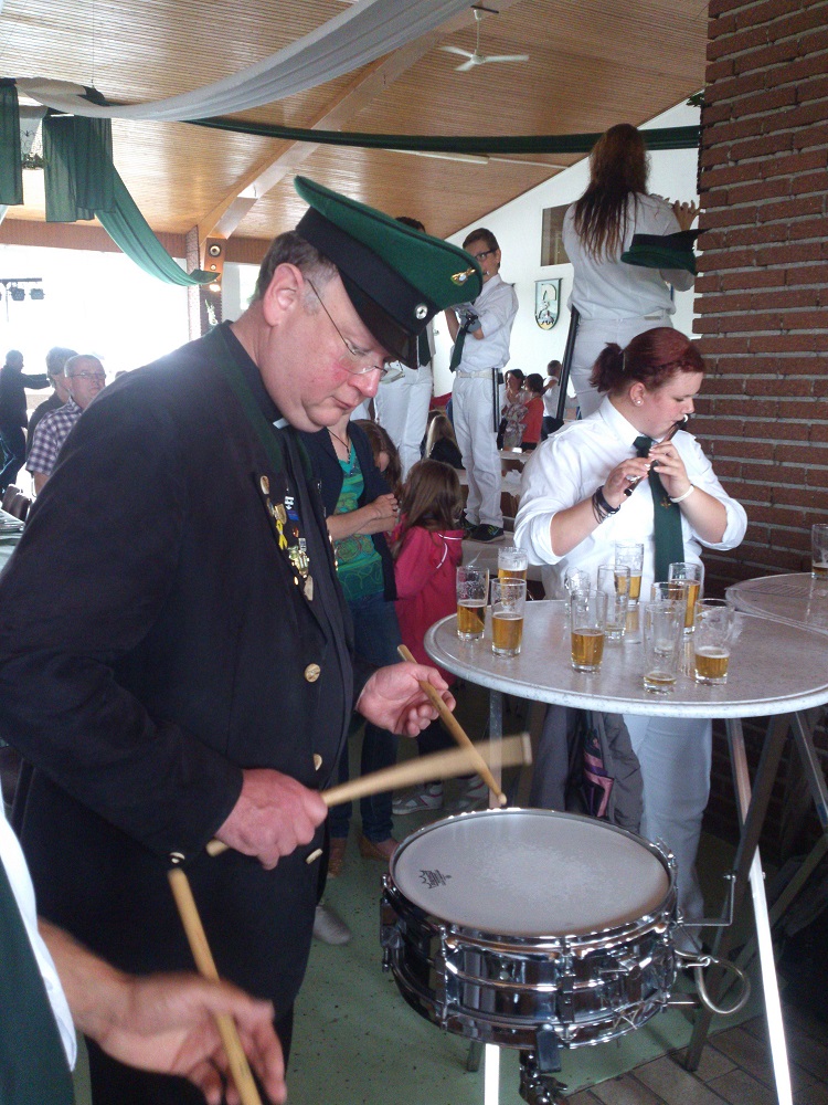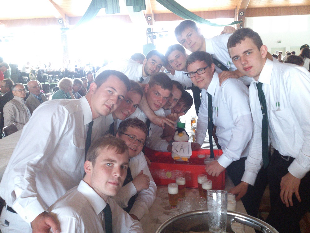 Alles in allem war es wieder einmal, trotz des Wetters, ein gelungenes Fest. Kai Tönnesmann der wegen Krankheit ausfiel wurde aber würdig von einem Pinguin vertreten, überall wo auch die Jungschützen waren tauchte auch das Stofftier mit grüner Kappe auf. (Heinrich Kaiser)