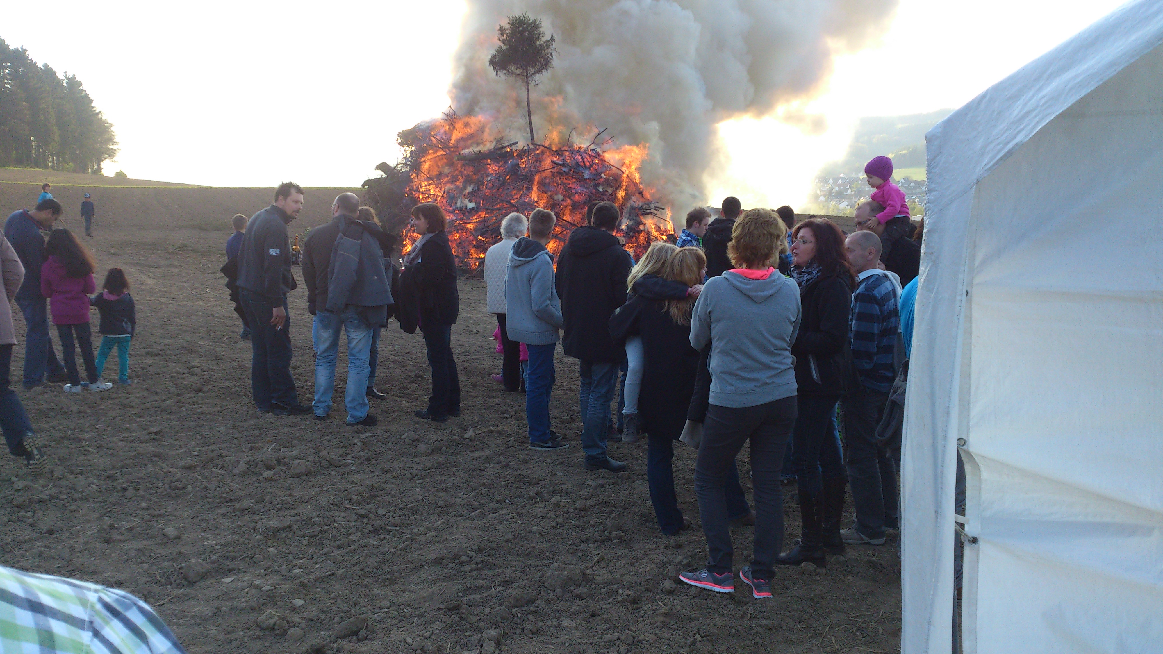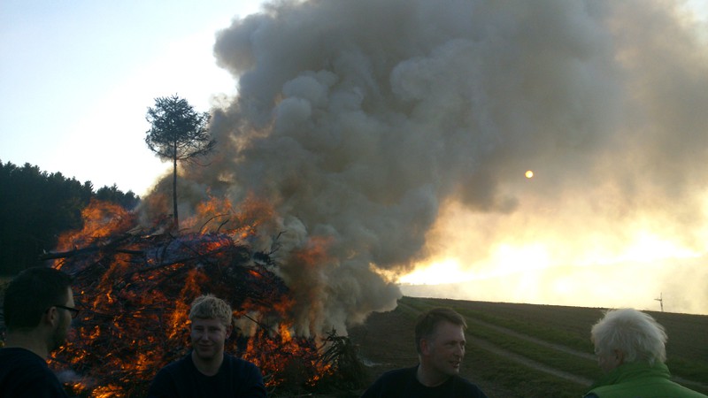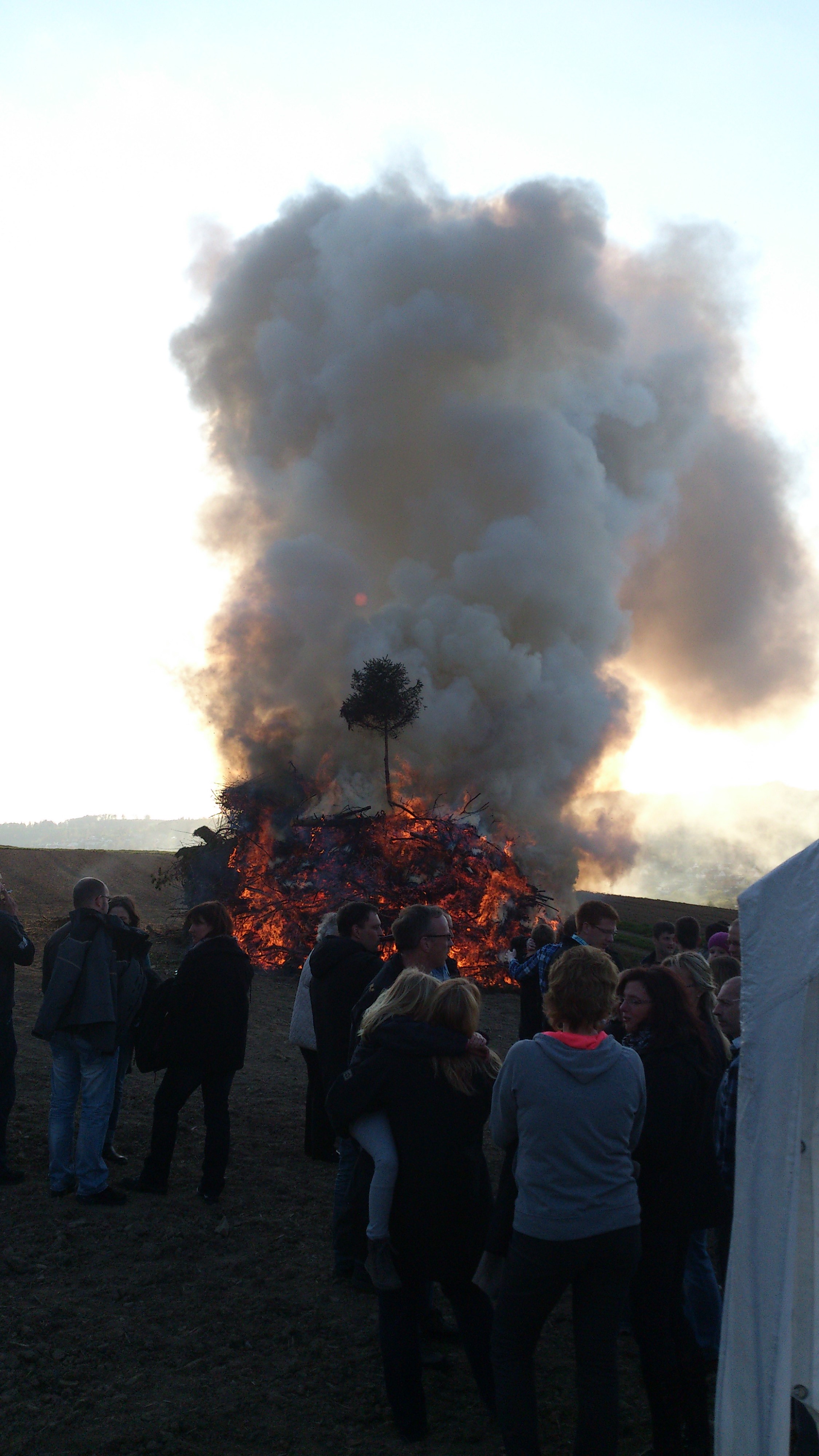Mit qualmenden Ostergrüßen aus Küntrop wurden die Neuenrader gestern aus Richtung des von der Feuerwehr Küntrop veranstalteten Osterfeuers bedacht. Selbst die untergehende Sonne hatte es schwer, sich der großen Zahl an Besuchern zu zeigen. Um 19.00 Uhr entzündeten die Blauröcke unter Leitung von Ulrich Maas das traditionelle Osterfeuer, an dem vor allen Dingen die Kinder wieder ihren großen Spaß hatten. Die Besucher waren an den neuen Standort unterhalb des Wellenberges geströmt, um sich natürlich auch an frischen Getränken sowie Leckereien vom Grill zu erfeuen. Am Mittwoch und Donnerstag der vergangenen Woche hatten die eifrigen Feuerwehrleute die Ast- und Baumabschnitte der Küntroper Bevölkerung gesammelt und diese mit maschineller Unterstützung von Berni Severin aus Hövringhausen zu einem stattlichen Osterfeuer aufgeschichtet. Das Küntroper Osterfeuer: Eine schöne Tradition, die durch den Besuch vieler Menschen belohnt wurde. (Ludger Stracke)