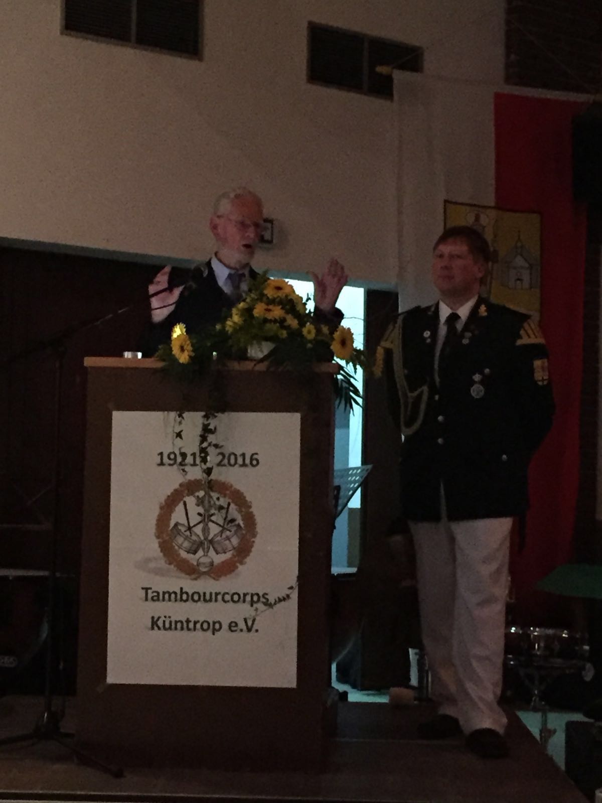 In seiner Ansprache betonte Bürgermeister Wiesemann die langjährige Tradition des Vereins mit den guten Kontakten zur Stadt Neuenrade und den umliegenden Dörfern. Er lobte die seit Jahrzehnten bekannte hervorragende Qualität der Musikbeiträge sowie die ausgezeichnete Jugendarbeit. Der Beitrag zum Gemeinwohl im Dorf Küntrop ist immens. Klemens Stracke ließ es sich nicht nehmen, um sich bei dem Tambourcorps für die jahrzehntelangen Besuche mit Ständchen am Morgen eines jeden Schützenfestsamstags zu bedanken. Er sagte: „Wenn ich so alt werde wie Ihr heute seid, dann feiere ich mit Euch Euer 100-jähriges Jubiläum“.