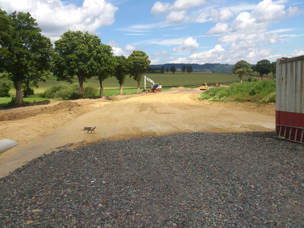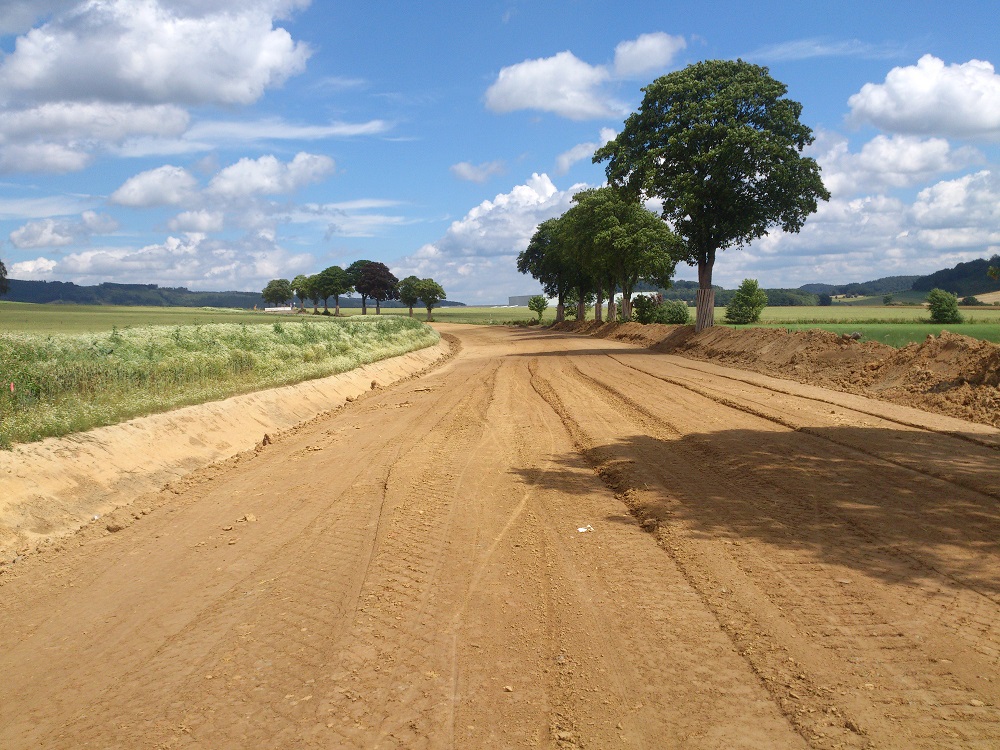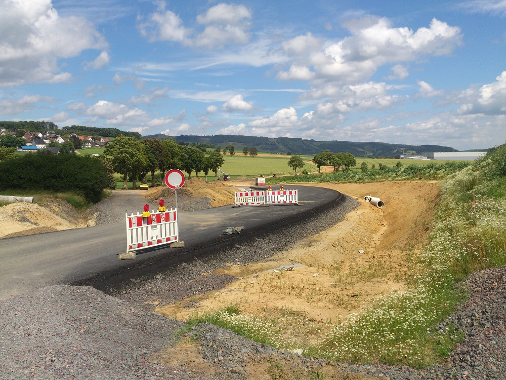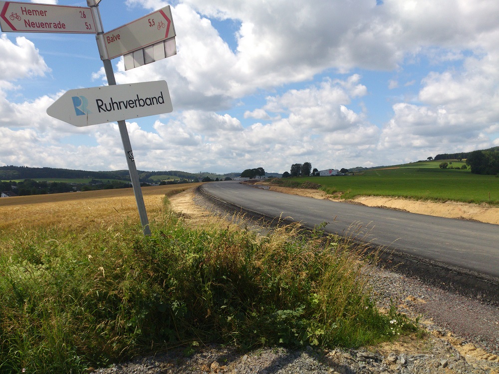 Hier mal ein paar aktuelle Bilder, vom 6.7.2014, bezüglich des Ausbaus der Umgehungstrasse zwischen Neuenrade und Garbeck. Welche wie man sieht, einige Erdbewegungen nach sich gezogen haben.Deutlich zu erkennen ist die breitere Spur und das entschärfen der Kurven